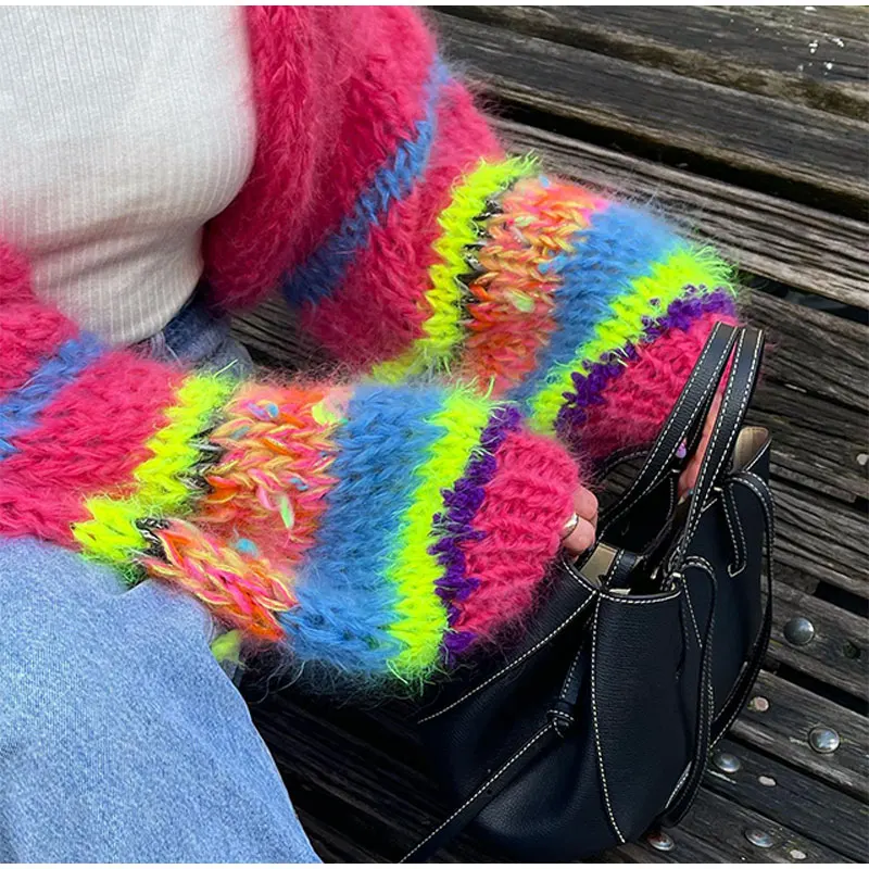 - Farverigt Stribet Design: Iøjnefaldende regnbuestriber tilføjer et legende præg til din efterårsgarderobe.