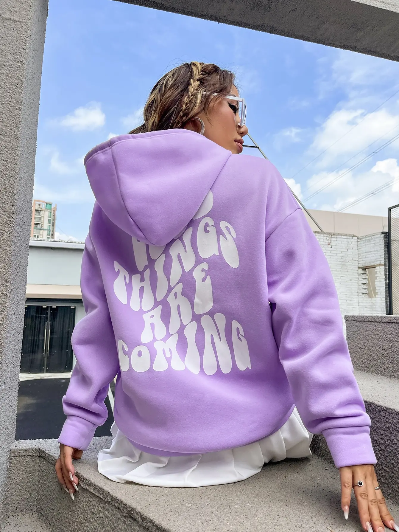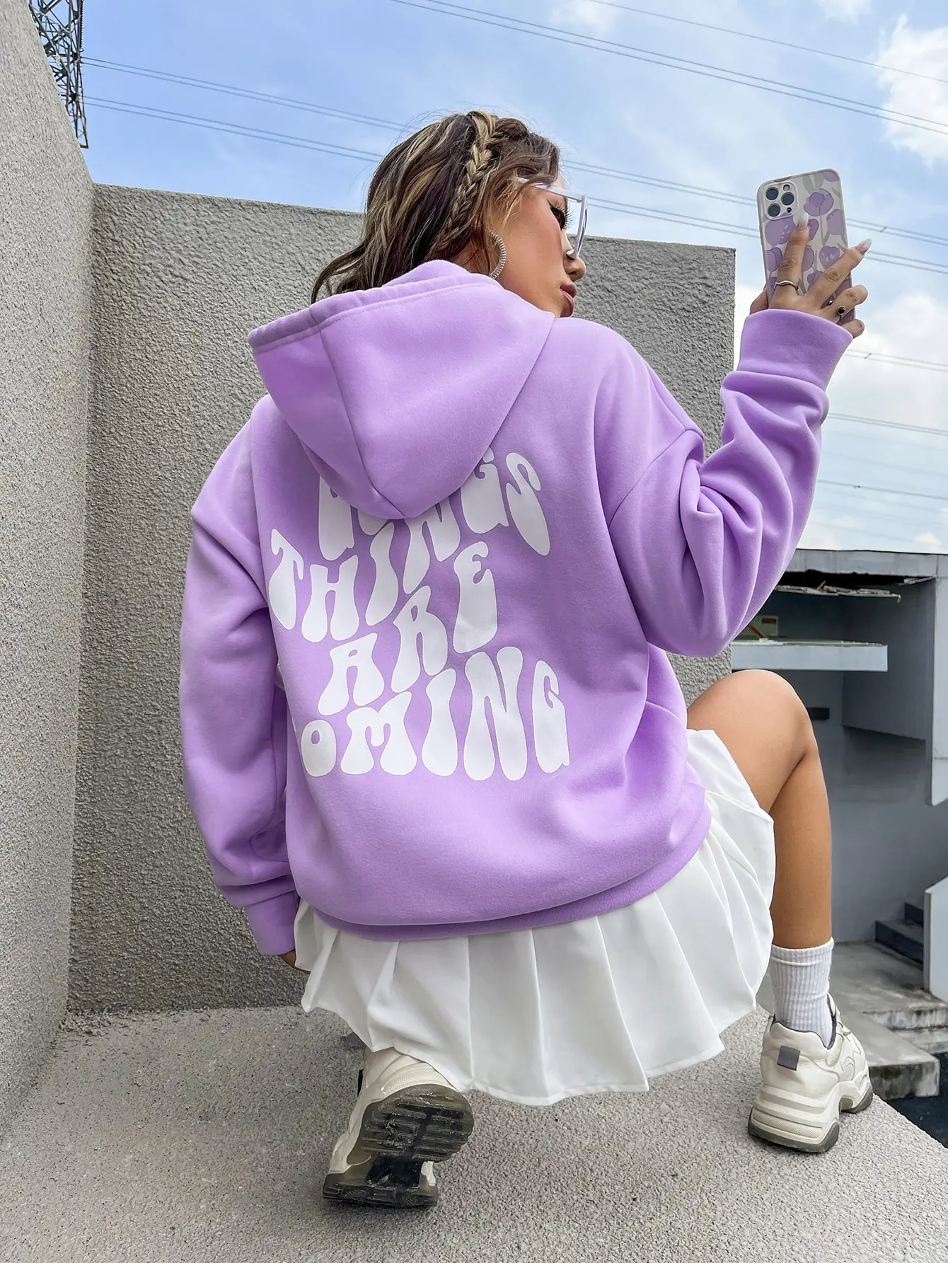 - Alsidig Stil: Med sin afslappede pasform og sænkede skulderdesign, giver denne hættetrøje fri bevægelighed og passer perfekt med jeans, leggings eller shorts. Uanset om du slapper af eller er ude med venner, passer den til enhver lejlighed.
