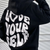 - Stil: Streetwear-inspireret med et modigt "LOVE YOURSELF" bogstavprint