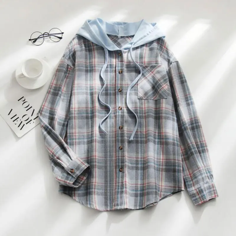 Augusta | Kvindernes Casual Hoodie Skjorte med Ternedesign til Efterår/Vinter