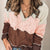 - Design: Farveblok patchwork med en stilfuld V-hals