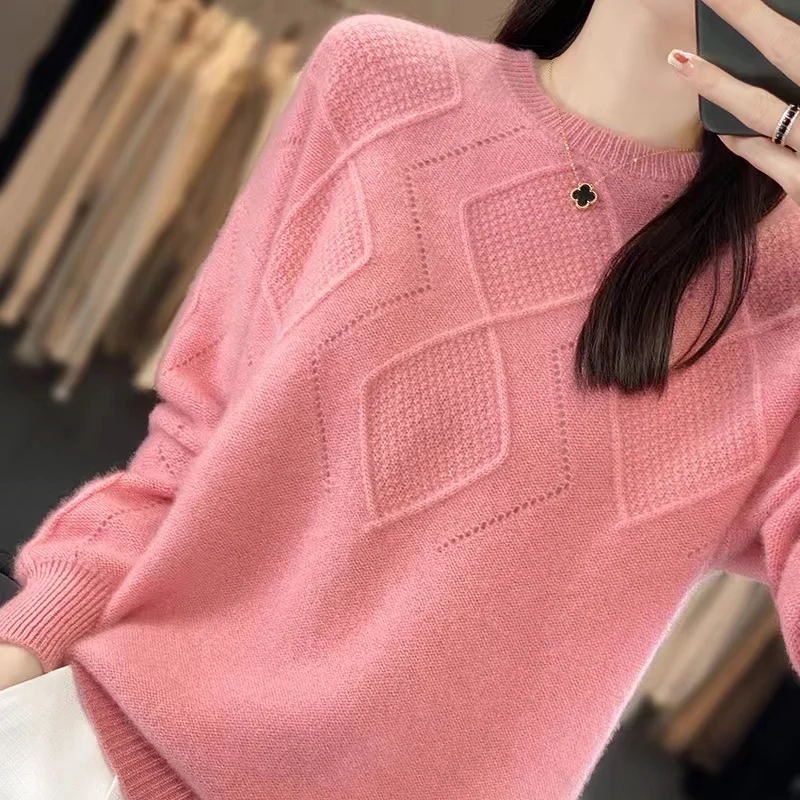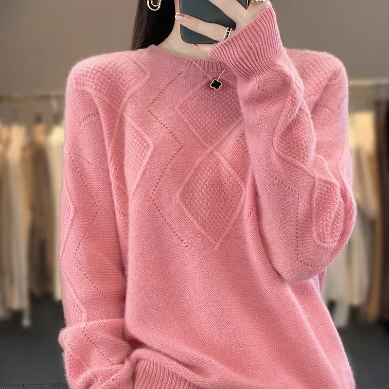 Benedikta | Hyggelig pink monokrom uldstrikket sweater til efterår/vinter