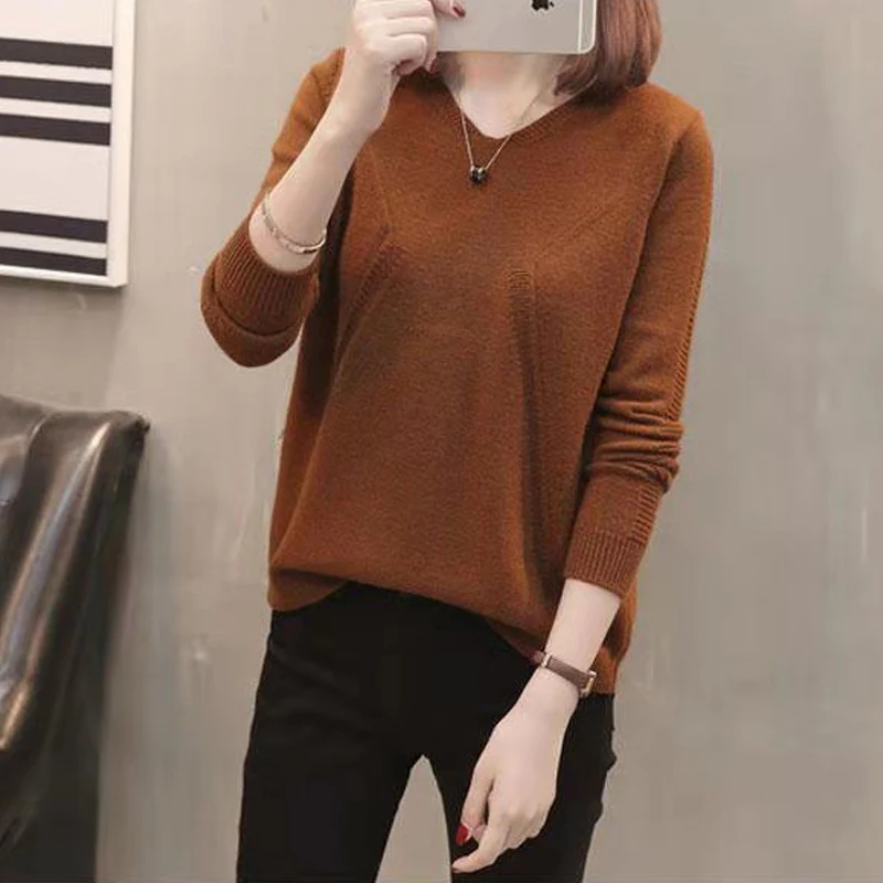 - Ubesværet Stil: Med sin klassiske V-hals og løse pasform fremhæver denne sweater din figur, samtidig med at den tilbyder maksimal komfort. Den er designet til kvinder, der værdsætter et chic, afslappet look.