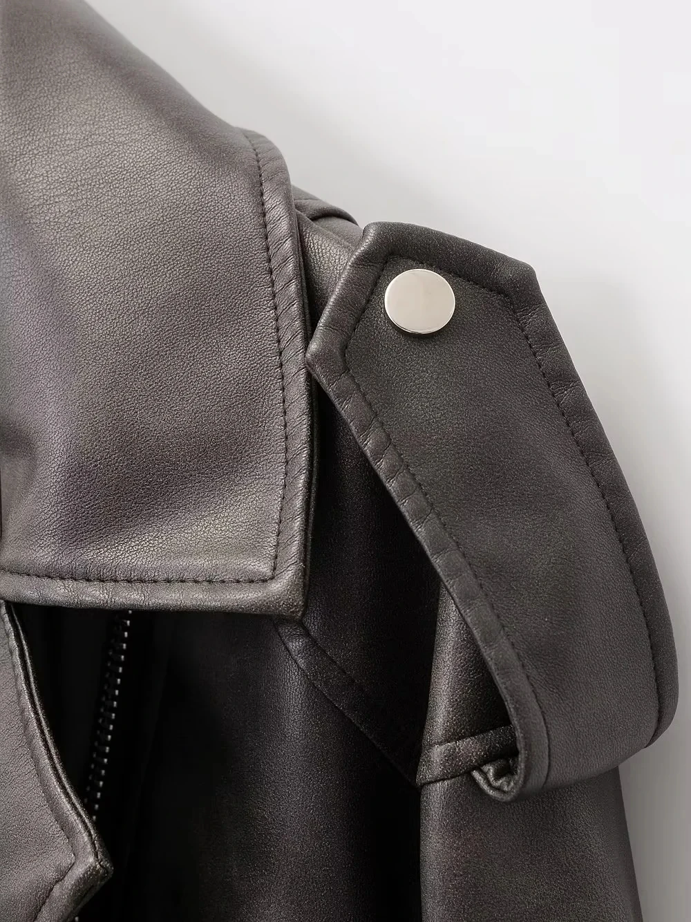Frida | Kvinders Chic PU Læderjakke med Bælte til Ubesværet Stil