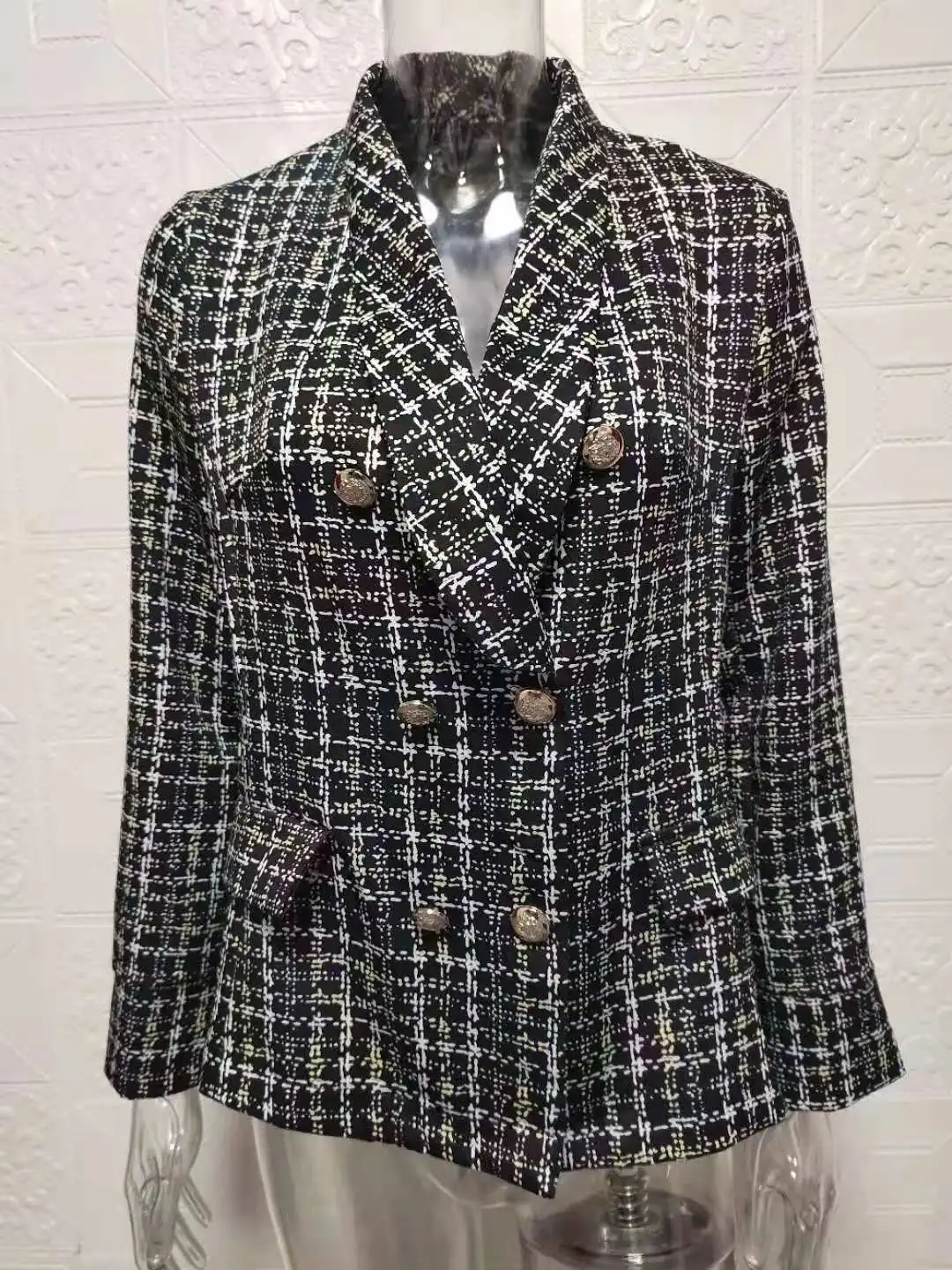 Skab et statement med Malene Stilfulde Ternet Blazer. Uanset om du skal til et møde eller nyder en aften ude, tilføjer denne blazer et strejf af elegance til ethvert look. Gå ikke glip af dette stilfulde must-have—bestil din i dag og redefiner din garderobe!