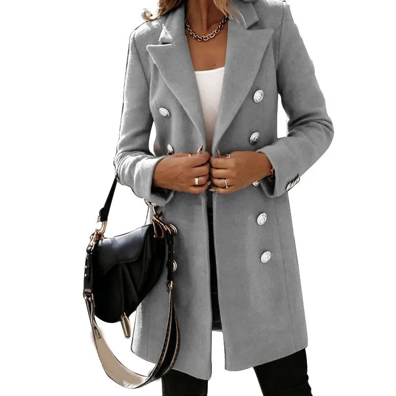 Marianne | Stilfuld Kvinders Langærmet Casual Uldfrakke til Vinter